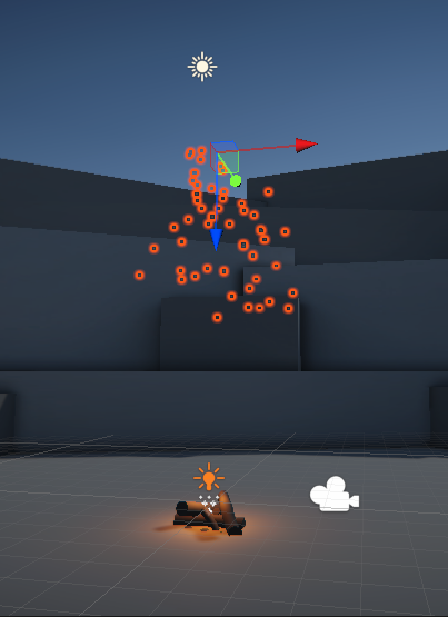 5. In the GameObject’s Transform component, set its Position to X=0, Y=10, Z=0 so that the emitter is centered above the fire and set its Rotation to X=90, Y=0, Z=0 so that the particles are shooting downward from above.