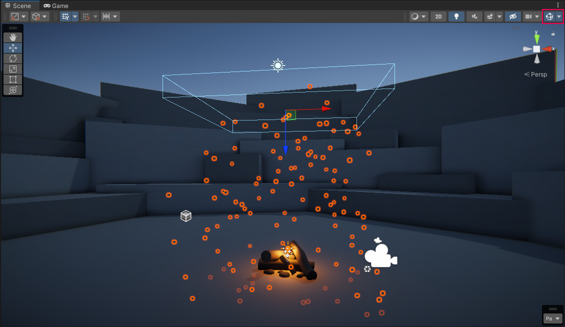 Note: If you do not see the outline of the shape, you may need to enable Gizmos in the top-right corner of the Scene view.