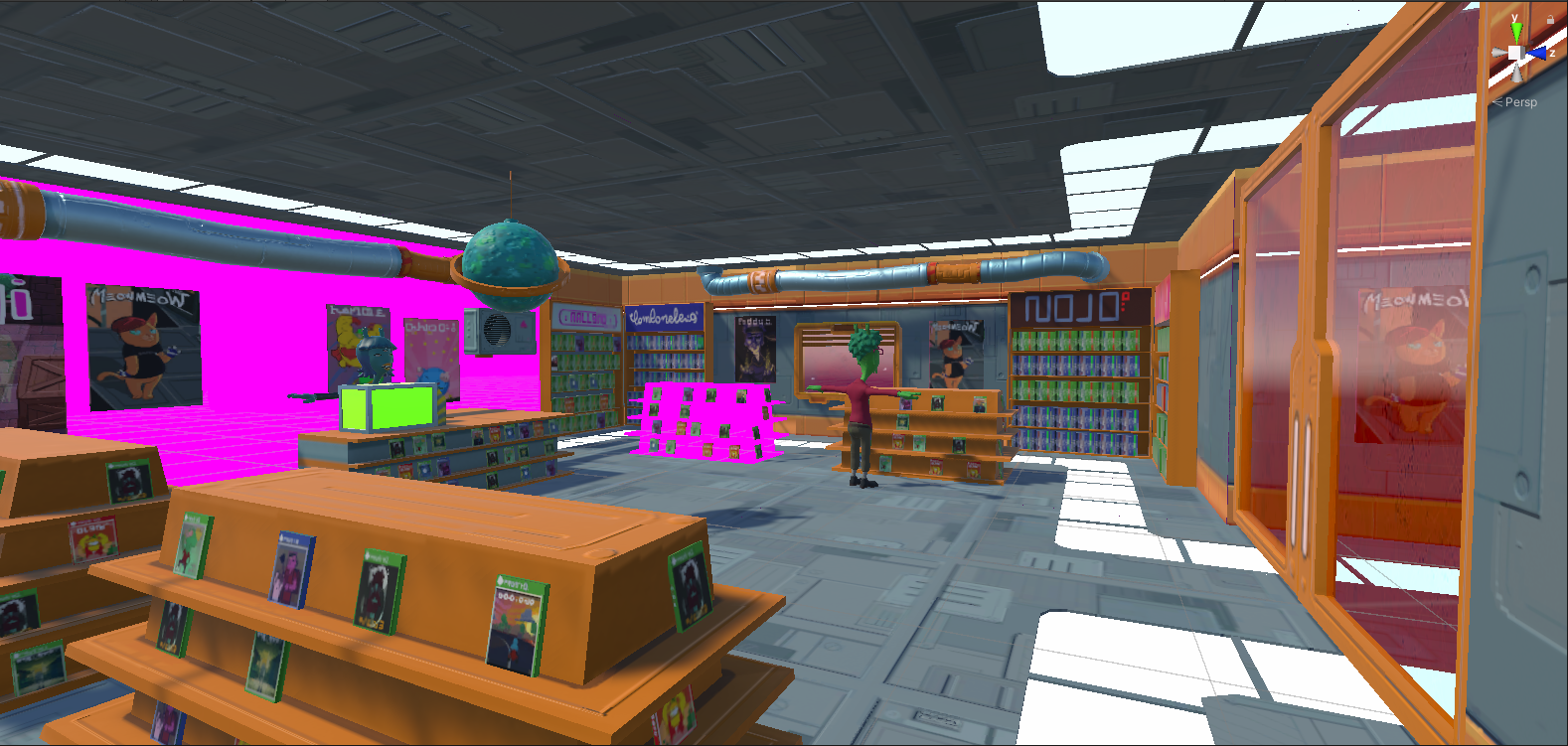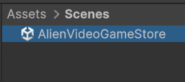 1. In the Project window, in the Scenes folder, create a new scene called something like “AlienVideoGameStore”, then open your new empty scene. If you want, you can also now delete the other sample scenes in this folder.