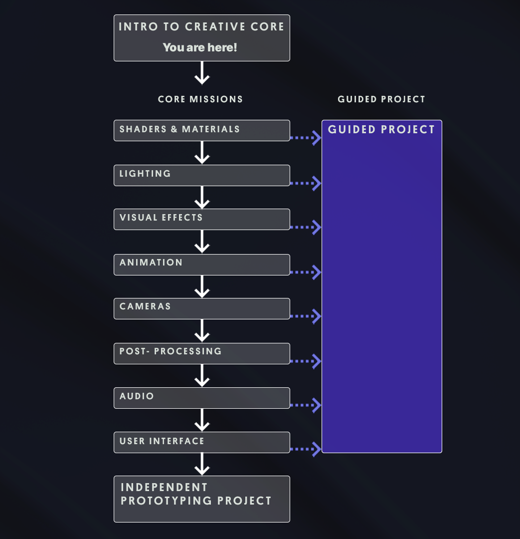 Note: The Creative Core pathway is designed for people who already have some experience using the Unity Editor.