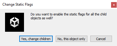 2. In the Change Static Flags dialog window that appears, select Yes, change children.