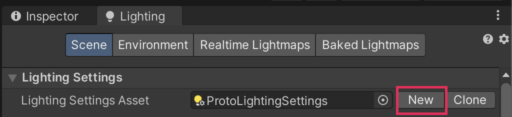 1. In the Lighting window (top menu: Window > Rendering > Lighting), go to the Scene tab. Select New Lighting Settings.