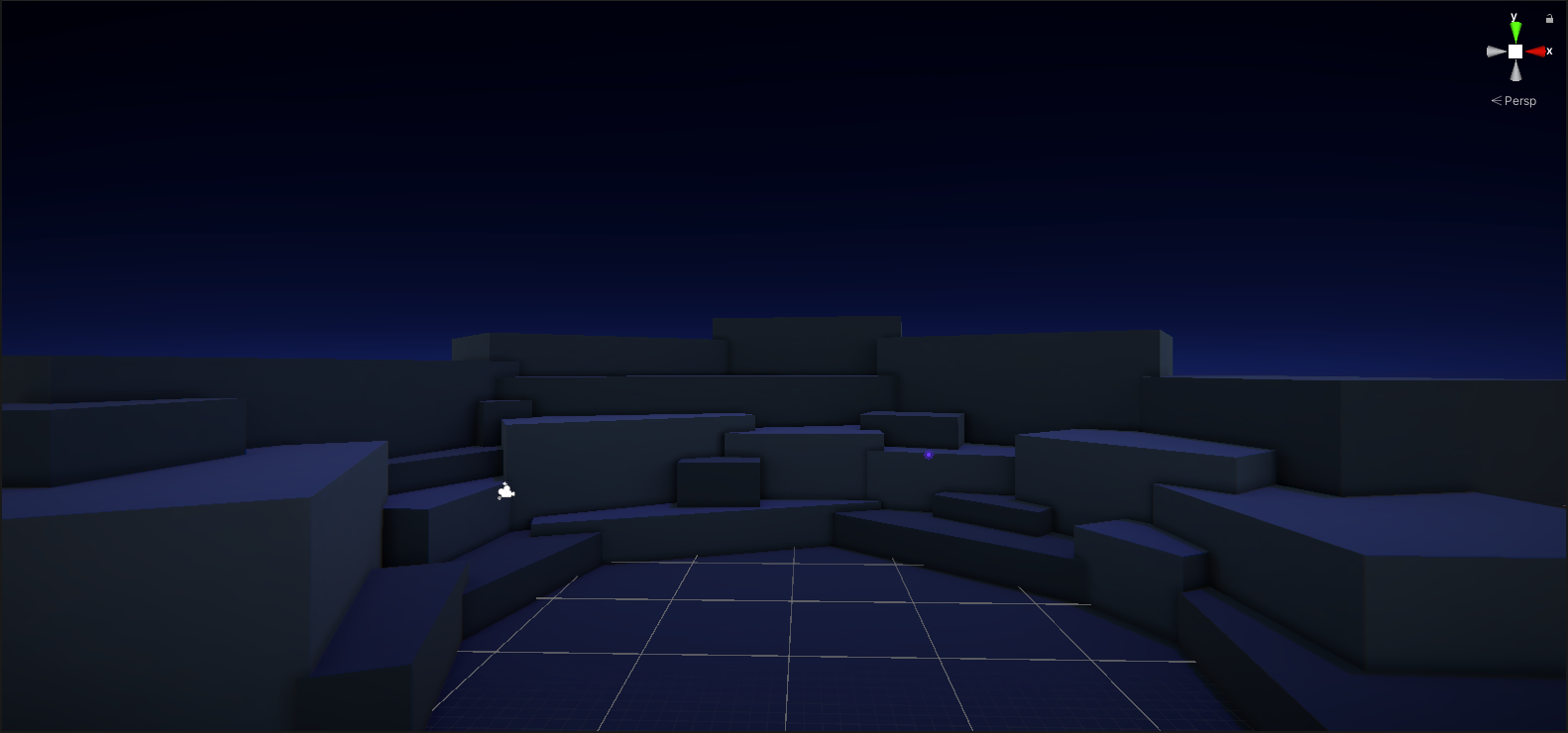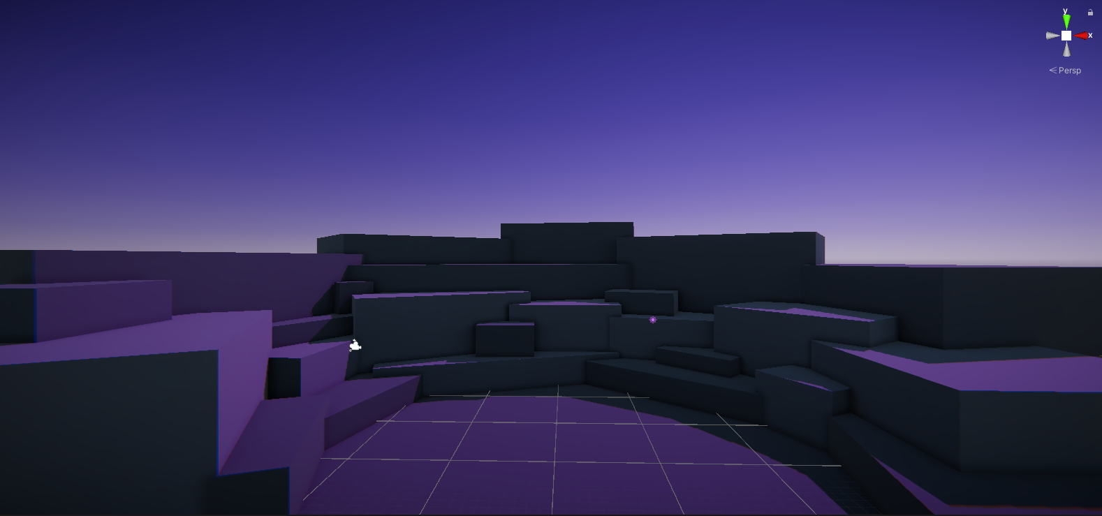 Here the sky has a purple tint and it’s still quite bright, especially close to the horizon line. The pink-purple color of the Directional Light is now easy to see, but the sky and Directional Light are currently providing a very stylized look.
