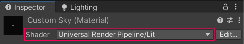 5. Drag your new material to the Skybox Material property and release to assign it.
