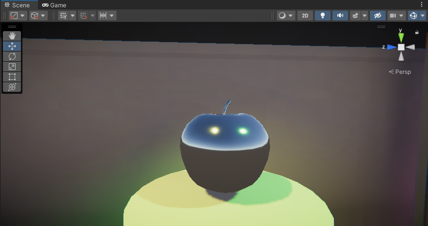 Every scene in Unity actually has a secret Reflection Probe to sample the skybox. This is what provides the basic reflections in a scene — and this is what is currently providing the reflection on the metallic apple.