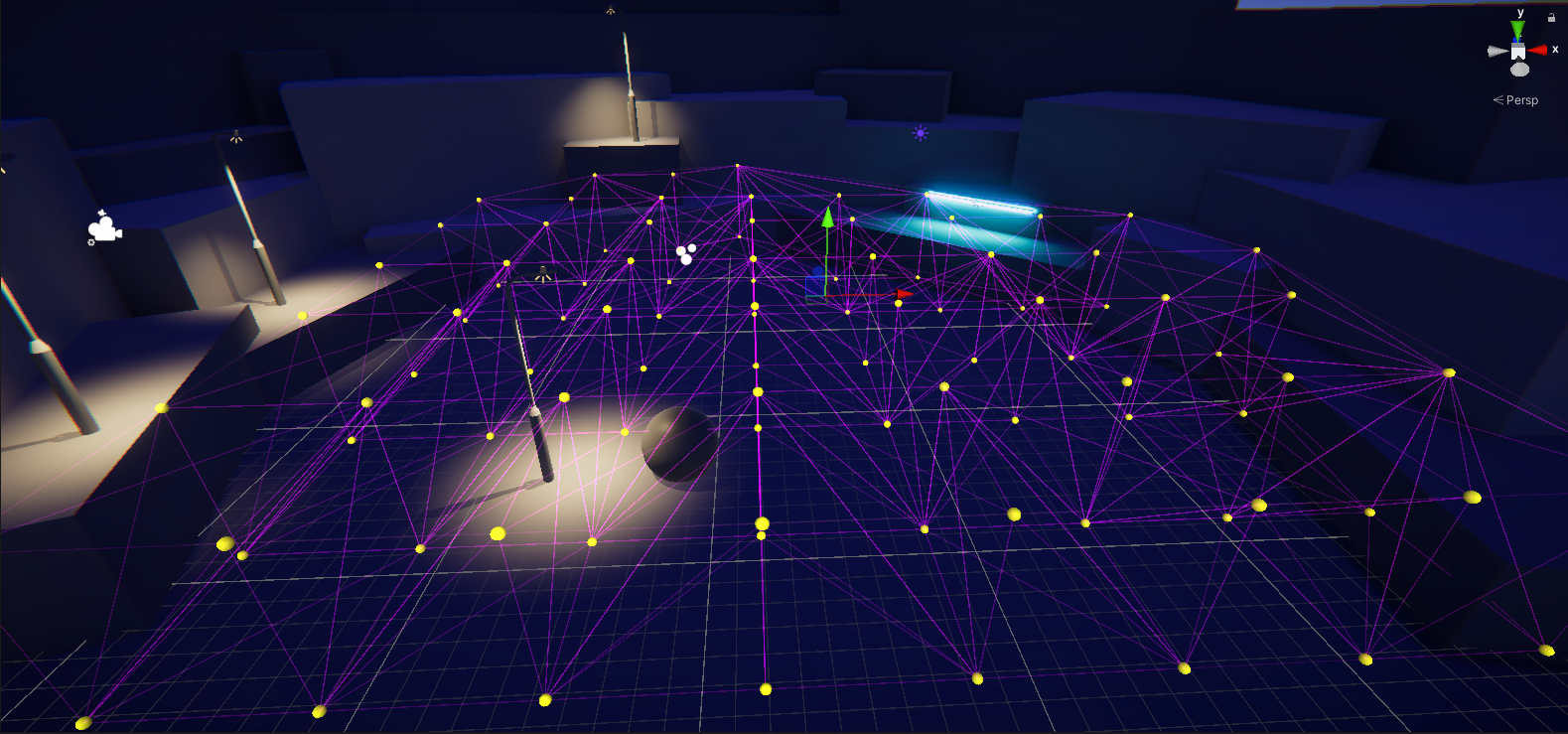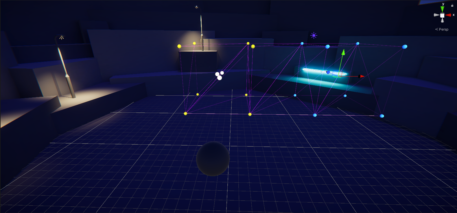 You’re already storing data about how light hits the different surfaces in your scene in a lightmap. You can use Light Probes to measure (or probe) data about the light that passes through the empty spaces in your scene. At runtime, data from the nearest Light Probe is used to estimate the light that should hit any moving GameObjects in your scene.