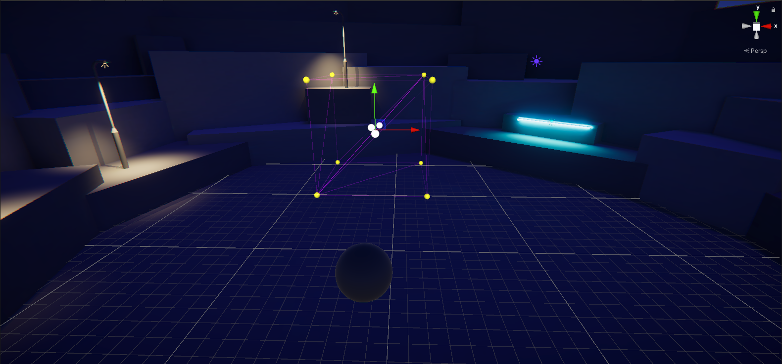 8. When you’re done, return the street lamps to their previous placement. Make sure that the Light Probe Group covers the light cast by the street lamps — if it doesn’t, you can raise the top row of Light Probes or create a new layer for the 3D volume.