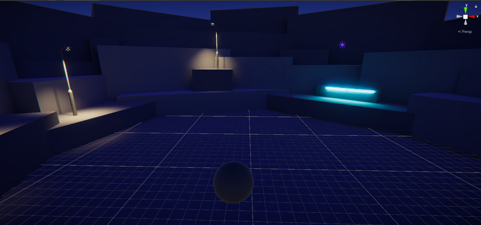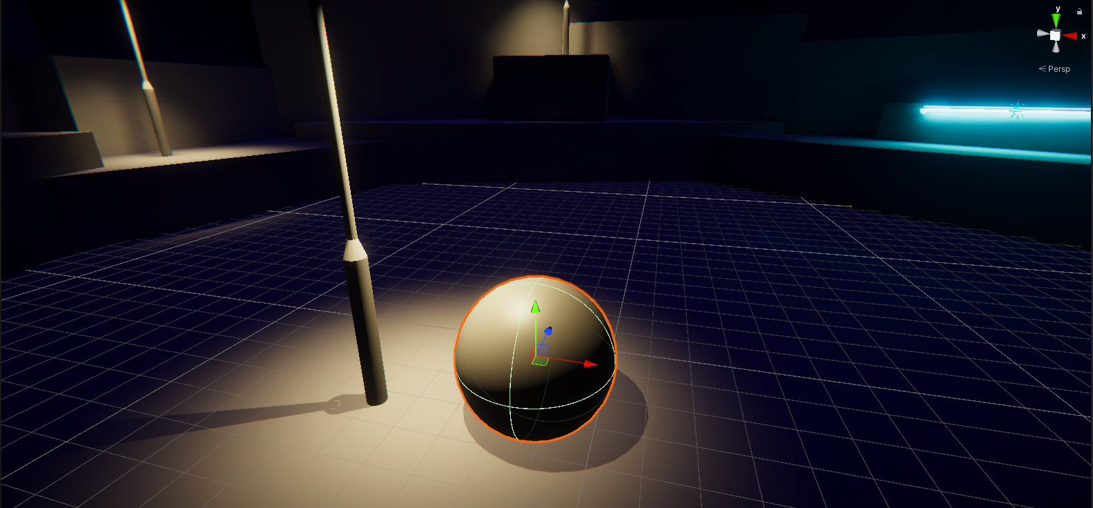 3. Move your sphere beneath the non-static street lamp in the center of the amphitheater. You should notice that the top of it is brightly illuminated by light.