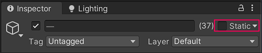 2. In the Inspector, enable the Static property (next to the field for the GameObject name).
