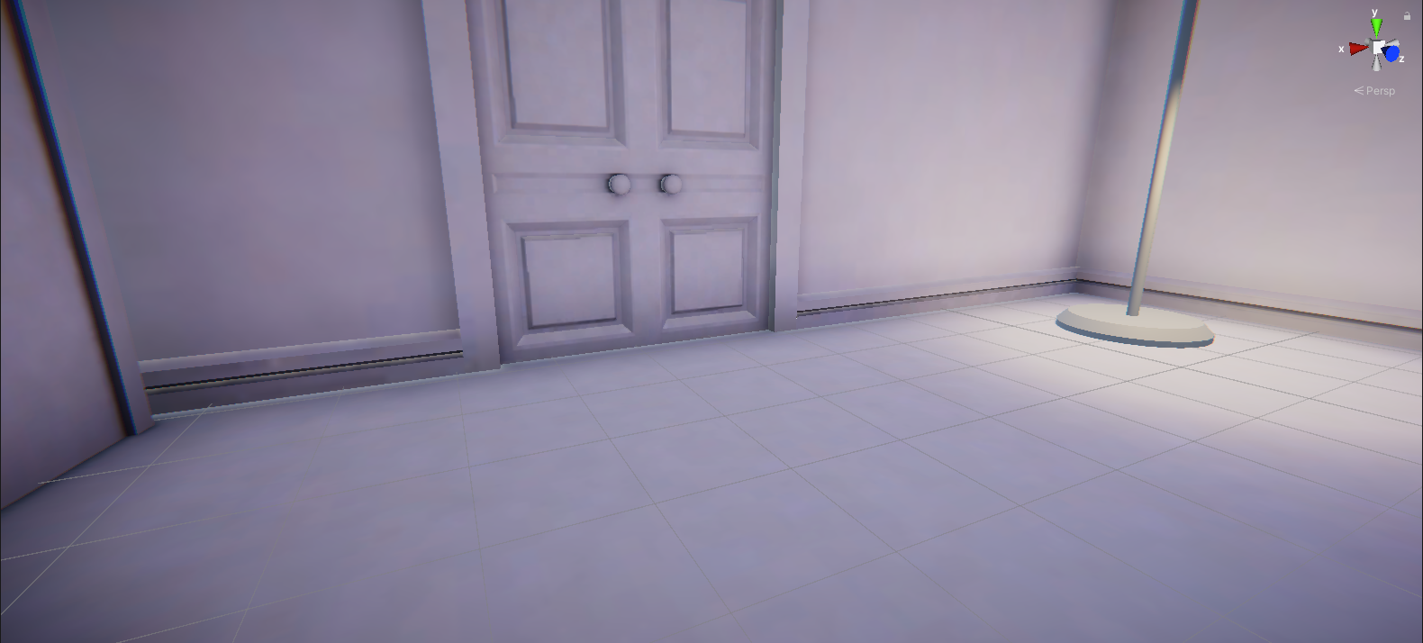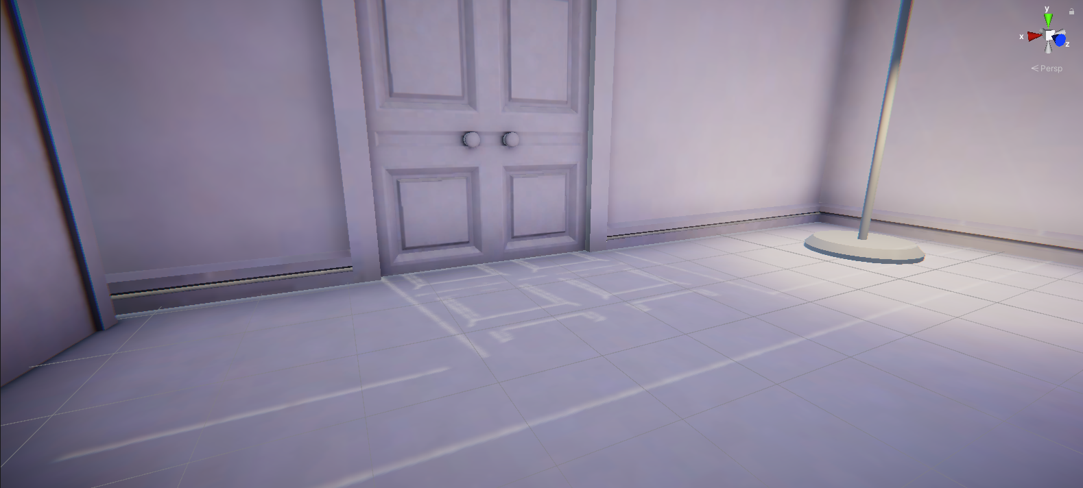 1. In the Scene view, navigate in front of the door so you can observe how your actions impact the light leaks.