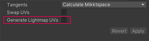 3. Enable Generate Lightmap UVs and then select Apply.