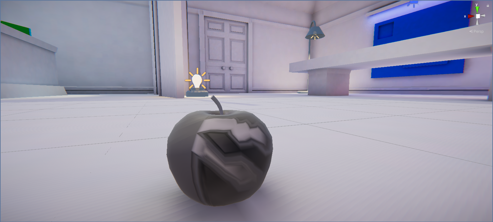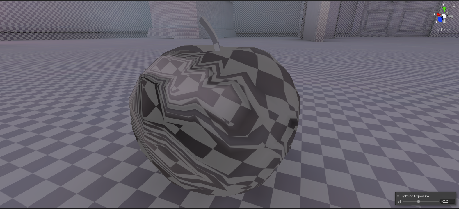 6. Rebake the scene’s lightmap. You should notice something wrong with the apple immediately — strange distorted patterning is present on half of the model.