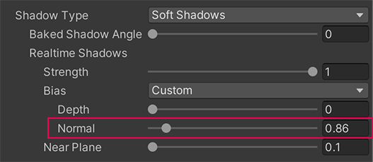 4. Experiment with the Depth, Normal, and Near Plane property value sliders. Try to minimize light leaks, but find a balance that works for you and your scene. You can learn more about these properties in the documentation.