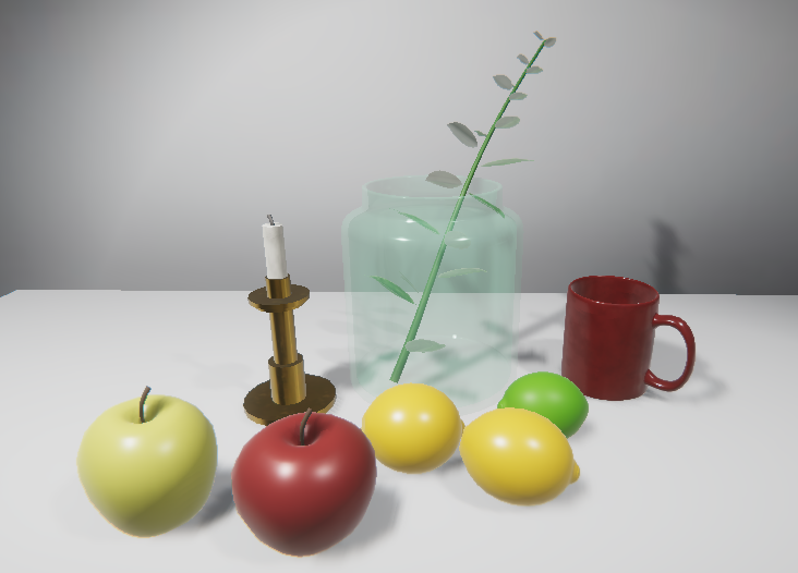 In these tutorials, you will use shaders and materials to make objects like these look realistic and compelling. Once you’ve gained these skills, you will have artistic freedom to assemble your own collection of subjects in your final composition. To create your work, we have provided you with a workbench full of objects and an empty plinth on which to display your final composition.