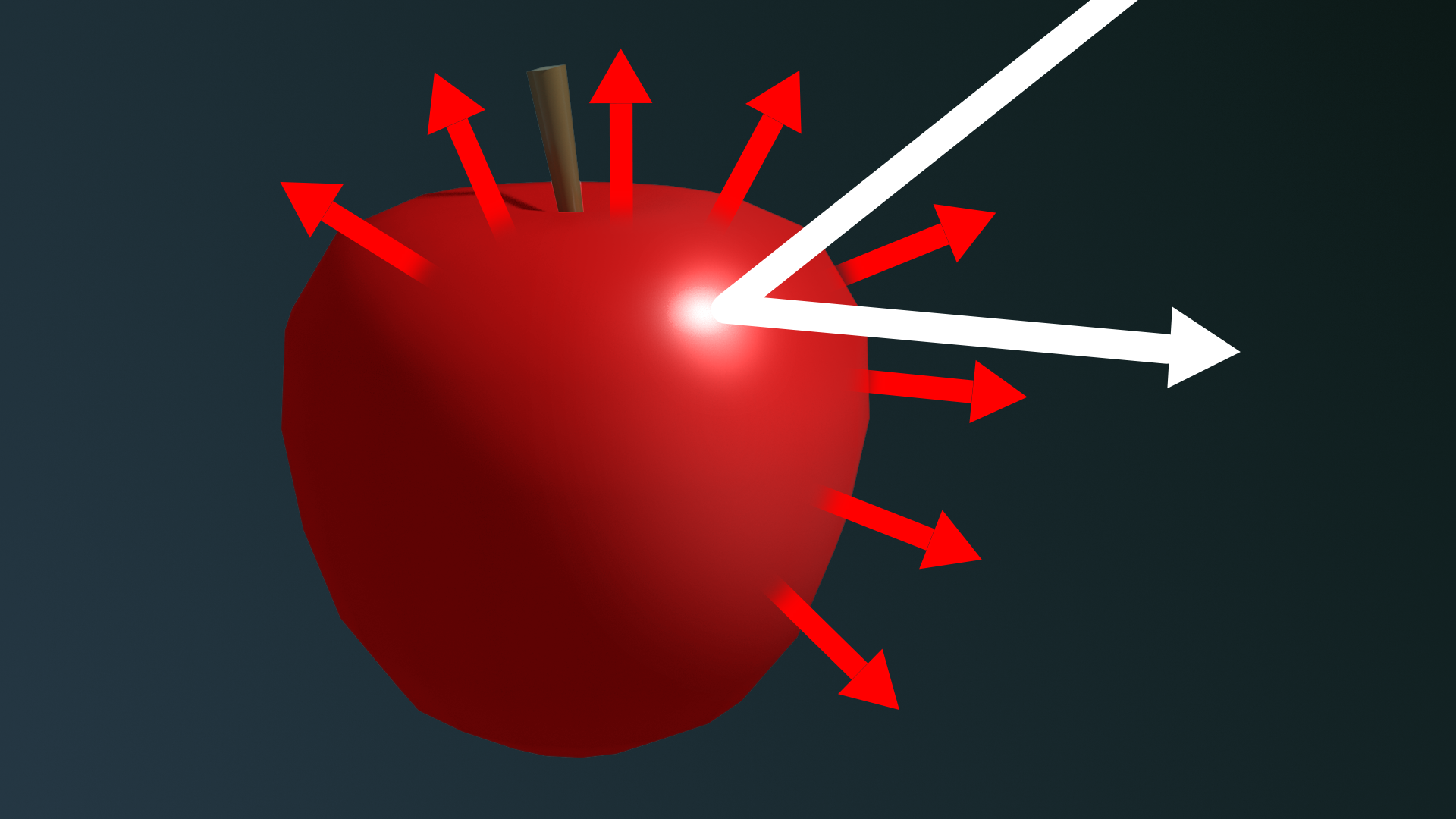 Let’s experiment with the specular reflection on the apple.