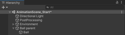 The ball will now bounce wherever you move the Ball Parent object. If you select the Ball object and look at the Inspector, you’ll be able to see why: the ball’s positional values haven’t changed at all. When an object becomes a child of another object in Unity, its transformation values shift from being global to local. The Ball being a child of the Ball Parent means that it only cares about its positional value in relation to the parent object. This means that you can move the Ball Parent object anywhere in the scene without affecting the child object’s animation.