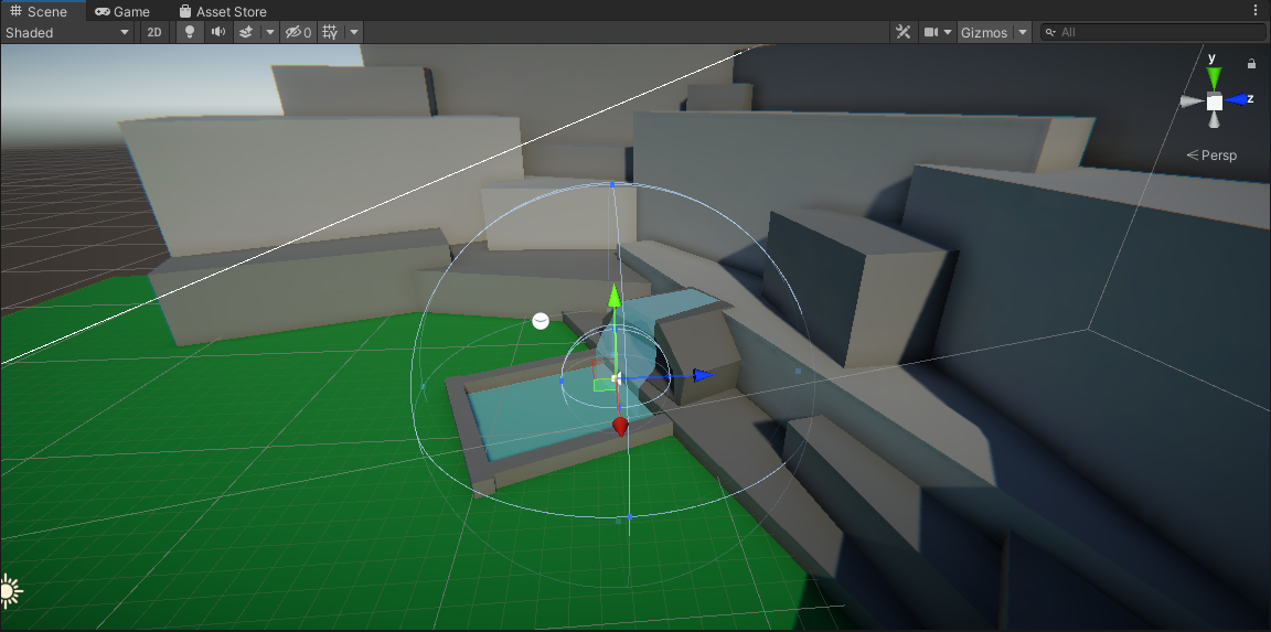 2. In the Scene view, move the Waterfall Audio GameObjectthe bottom of the waterfall where it meets the pond.