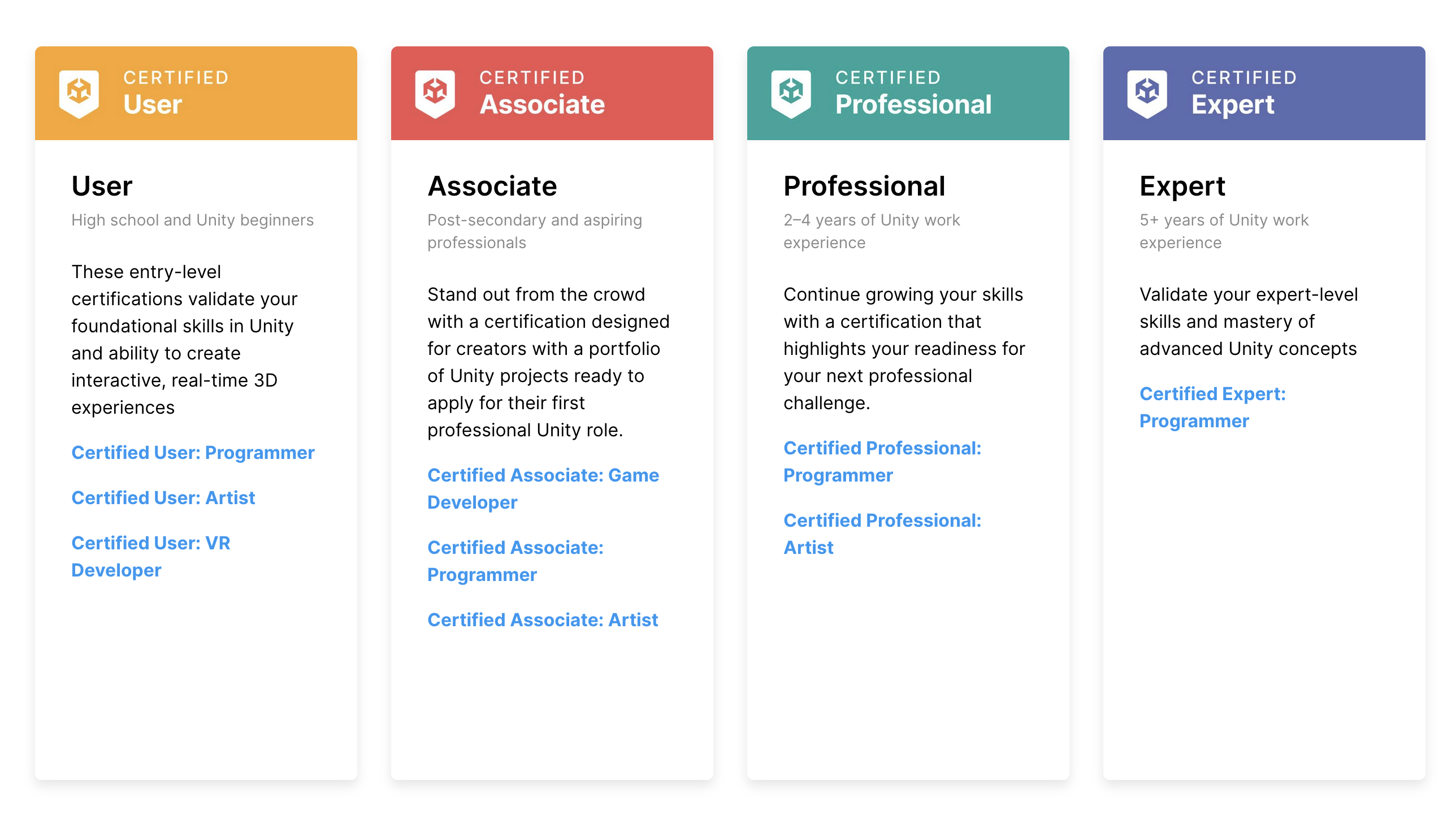 - Most of the skills and competencies validated by the Certified Associate: Game Developer certification