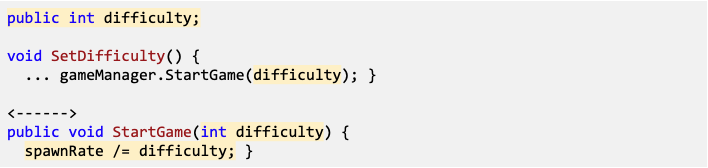 - In StartGame(), set spawnRate /= difficulty;