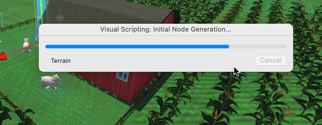A new progress window should appear, which will generate the required nodes and libraries for Visual Scripting.