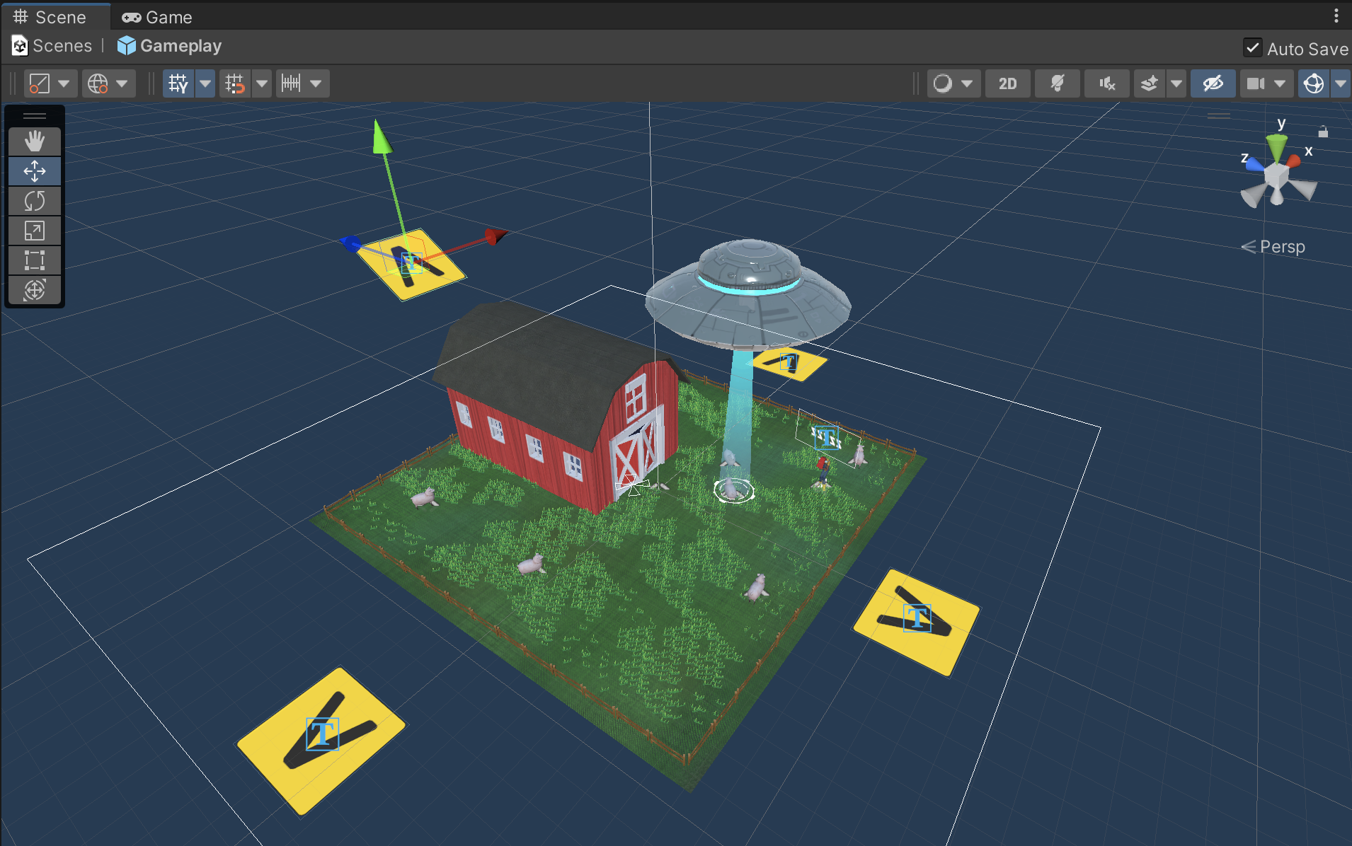 Congratulations! You now have a working world space UI that your player can use to control the UFO’s movement in your AR game port, regardless of whether you have chosen a marker or plane-based approach.