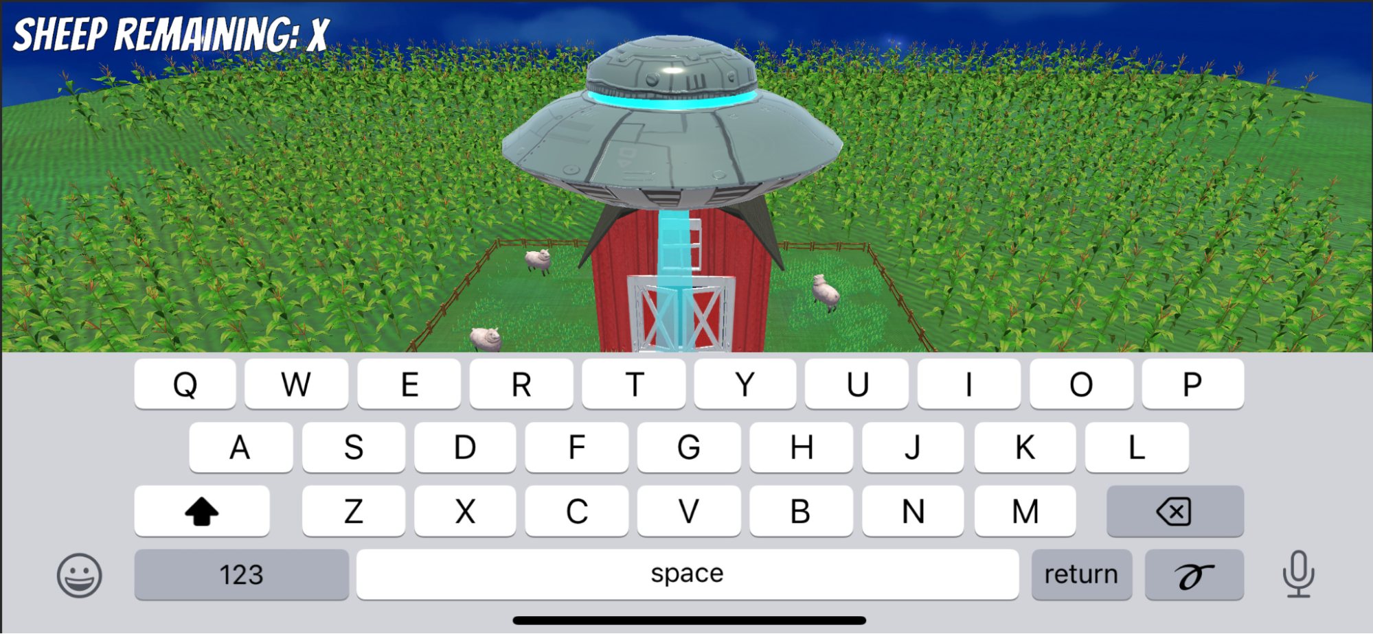 As you adapt the UFO game to be an AR experience, you'll need to rethink the way that the UFO moves. In the desktop version, the UFO was controlled with the keyboard, but displaying the entire keyboard isn’t really a viable option for a mobile game — it would take up half the screen!