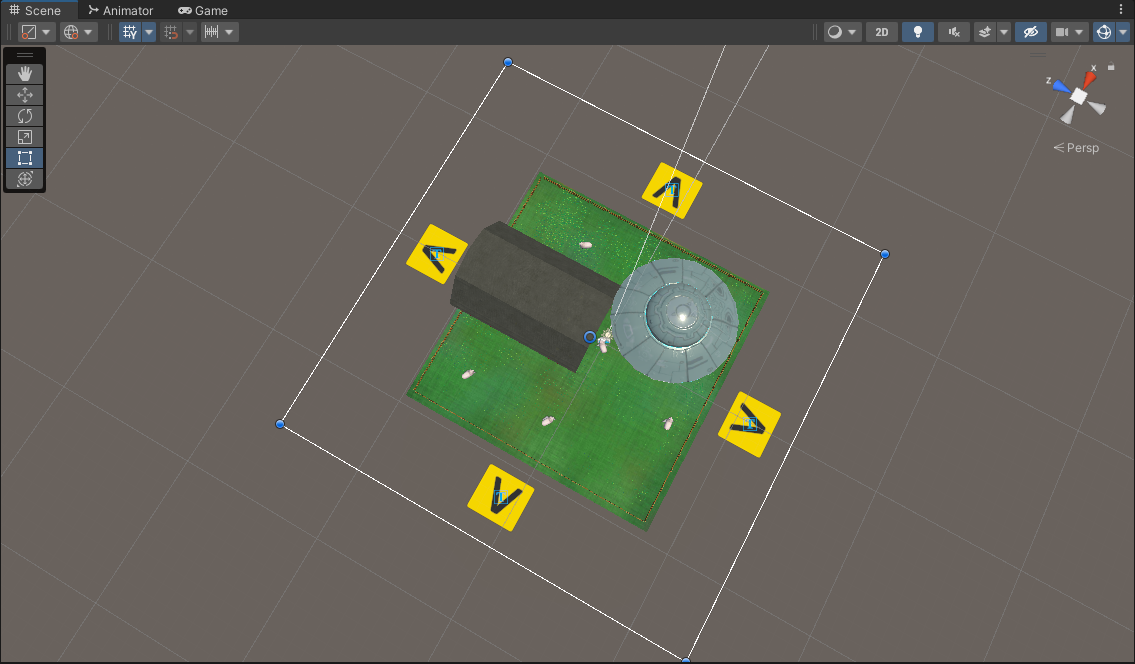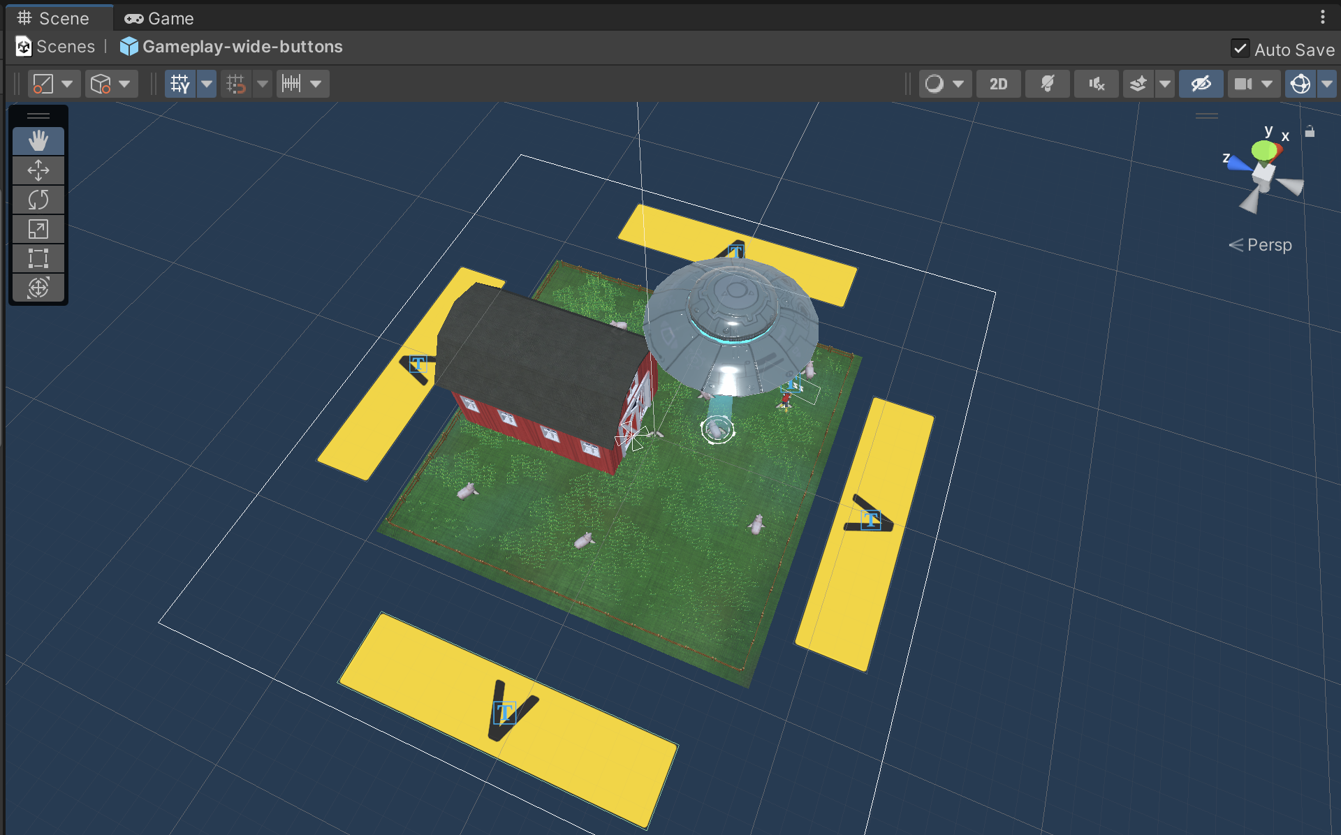 11. Build and test on your device. When you touch one of the world space directional buttons, the UFO should move in the correct direction.