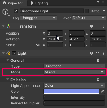 - Option 2: Set the directional light to realtime and don’t work with baked light at all. This may seem like the easier option, but be sure to test what the end result is like on your phone. As a reminder, realtime lighting is calculated every frame that the game is running, so it can slow down your application.