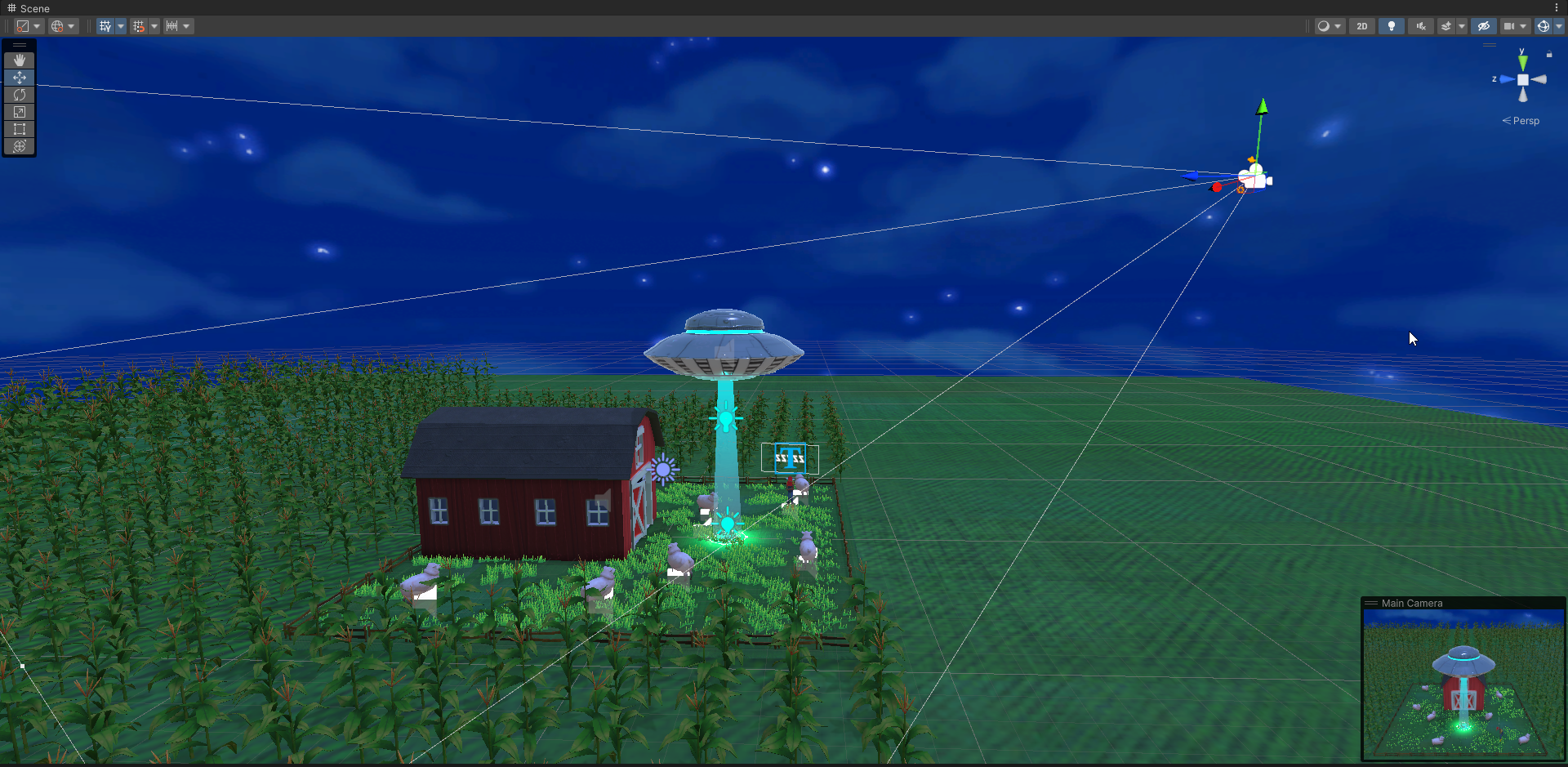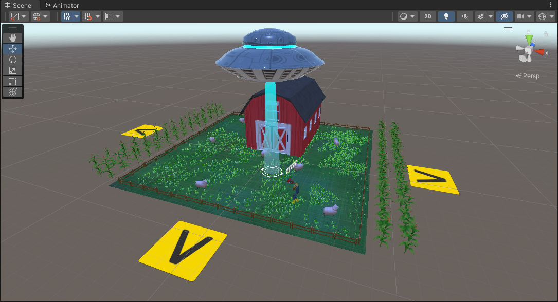 - Extra assets: The StartScene features the UFO hovering over a field of corn, but if you actually look at the scene, the field is really only a few meshes arranged specifically for the camera! How would you recreate the scene to preserve the overall mood of the original but have it work for AR?