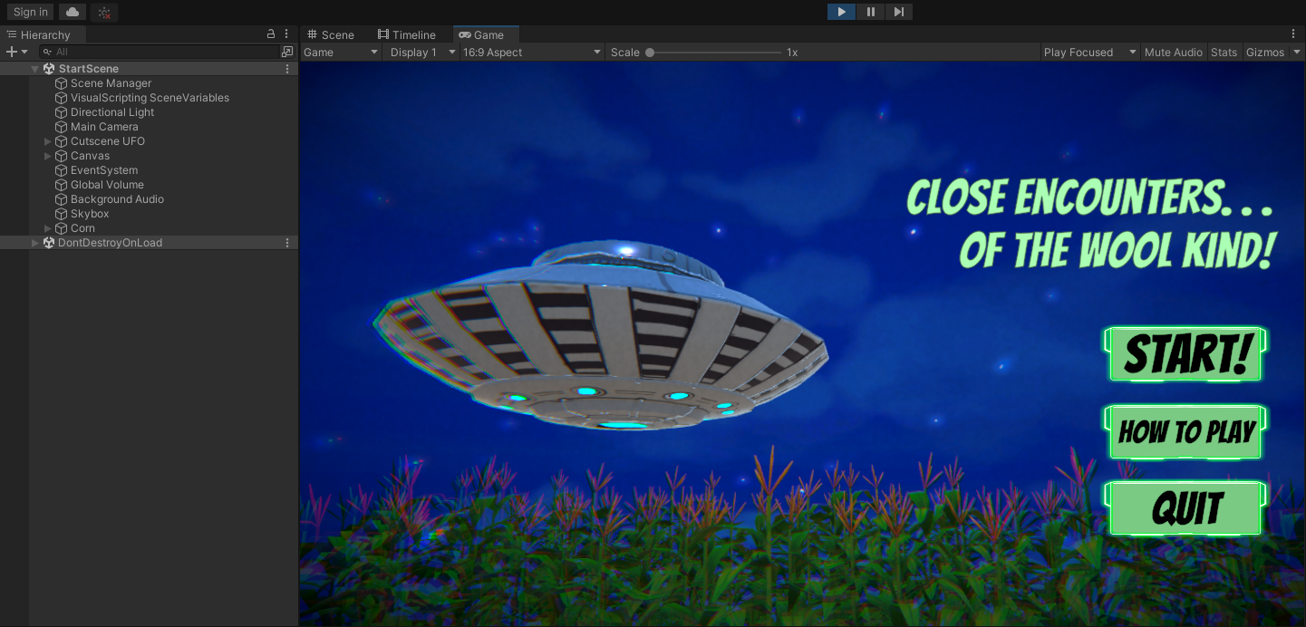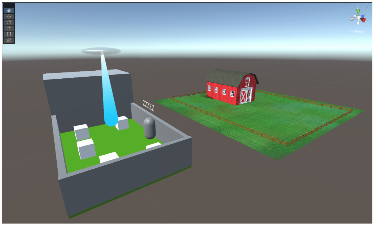 The game you’ll port to AR is called Close Encounters of the Wool Kind. It’s a relatively simple game: the player controls a UFO and attempts to abduct sheep from a field without the farmer noticing. If the farmer wakes up and catches you abducting sheep, you lose. If you successfully abduct all the sheep without the farmer noticing, you win! Watch the video below to see some of the gameplay.