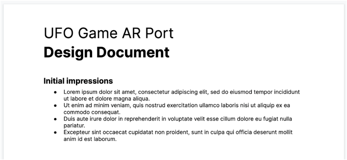1. Create a new text document and give it a title like “UFO game port - Design document”.