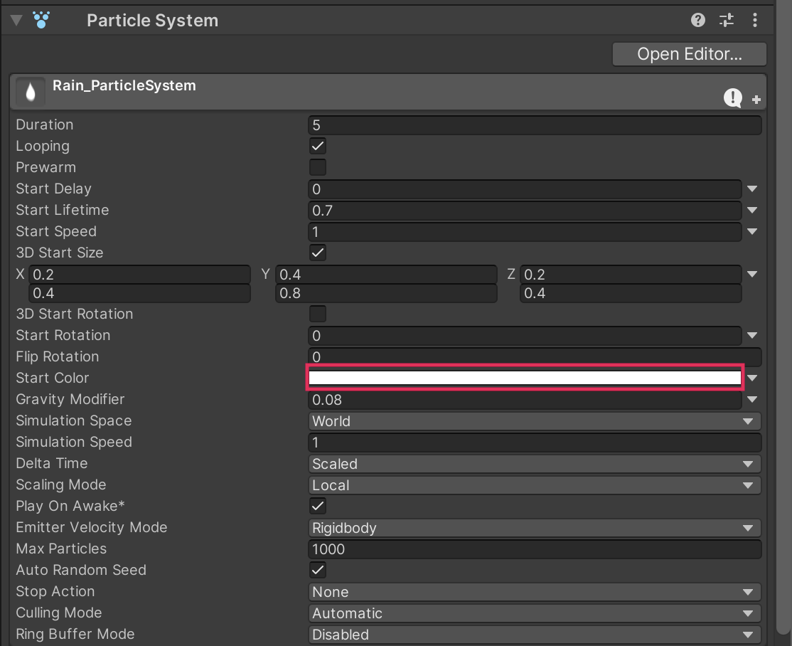 5. Change the color and notice how the tint of the particle system changes.