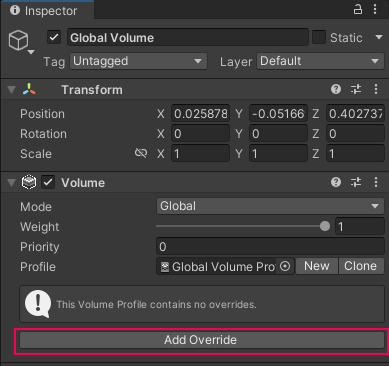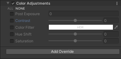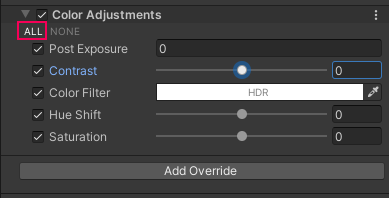 Each effect that you add to a volume is contained in a separate override that adjusts the volume’s settings.