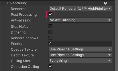 You can add and manage post-processing effects for scenes in URP projects using something called a volume. For example, you can configure a volume to apply one effect to an entire scene, or configure multiple volumes to display different effects in different areas of the scene.