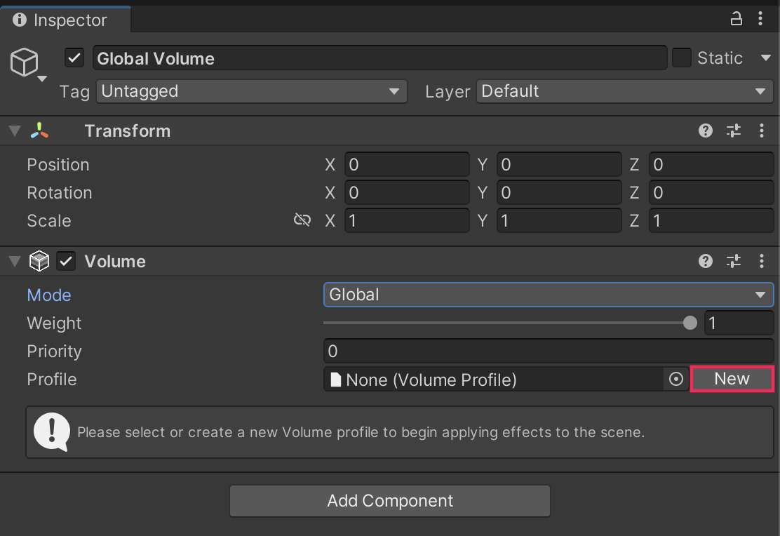 Now that you have a post-processing volume in the scene, you can add effects to the volume to change the look of your filter. Start with a color tint for your filter: