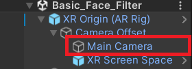 1. In the Hierarchy window, expand the XR Origin (AR Rig) GameObject and its child GameObjects, then select the Main Camera child GameObject.