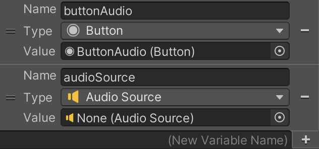Your button is ready, but it doesn’t do anything yet. Making the button work will take two steps in Visual Scripting. In the first step, you will make the references for the button and the audio, and in the second step, you will make the audio actually play on a button press. This is almost the same exact process you used to implement the popup canvas functionality.