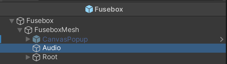2. In the Hierarchy window, create an empty GameObject as a child GameObject of the Mesh and name it “Audio”.