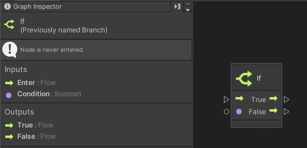 The If node has Boolean Condition input as well as True and False outputs. This allows you to plug in a Boolean, then initiate one sequence if that Boolean is true or another sequence if the Boolean is false.