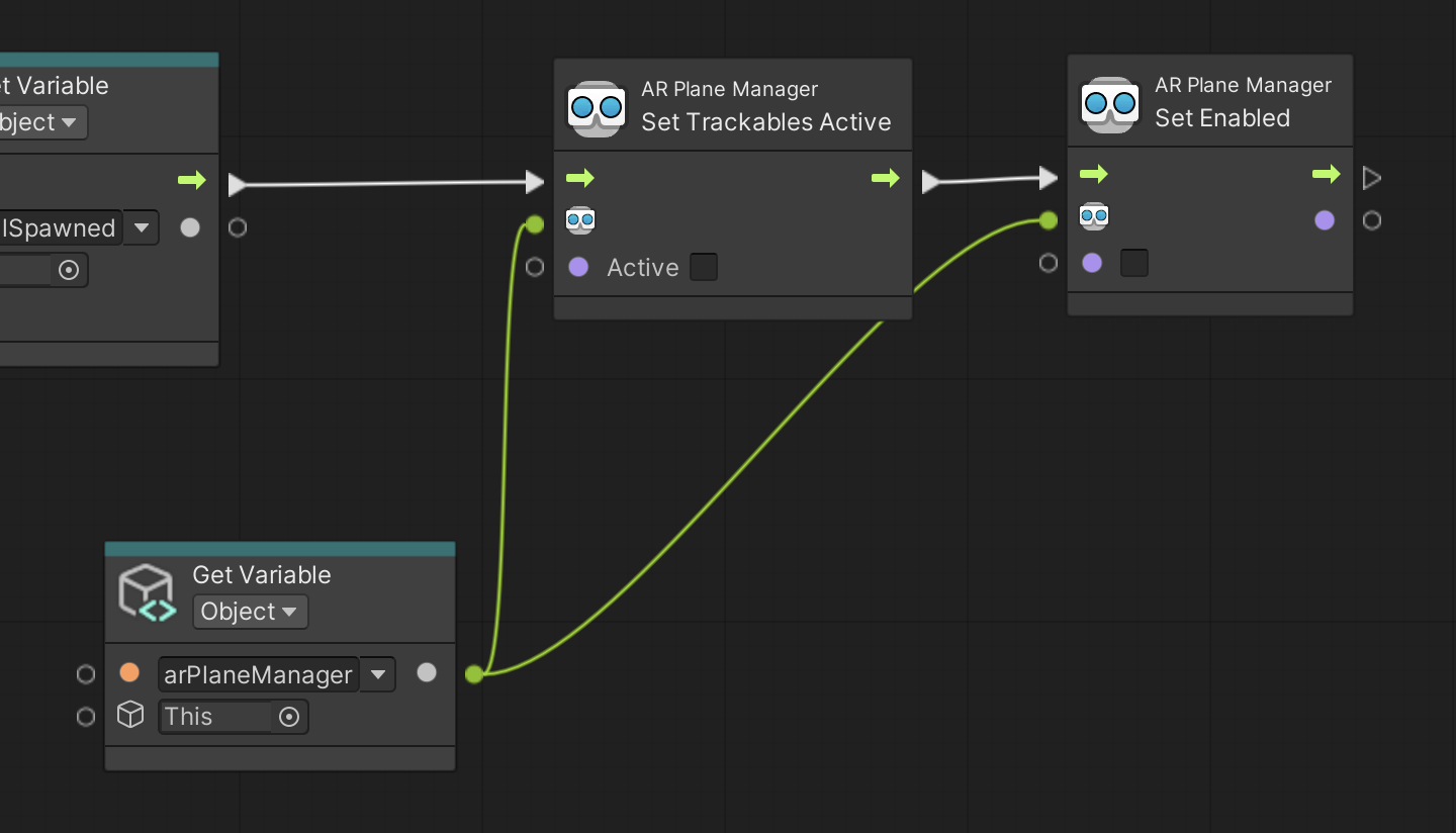 4. Connect both of the new nodes’ AR Plane Manager inputs to your arPlaneManager Object variable.