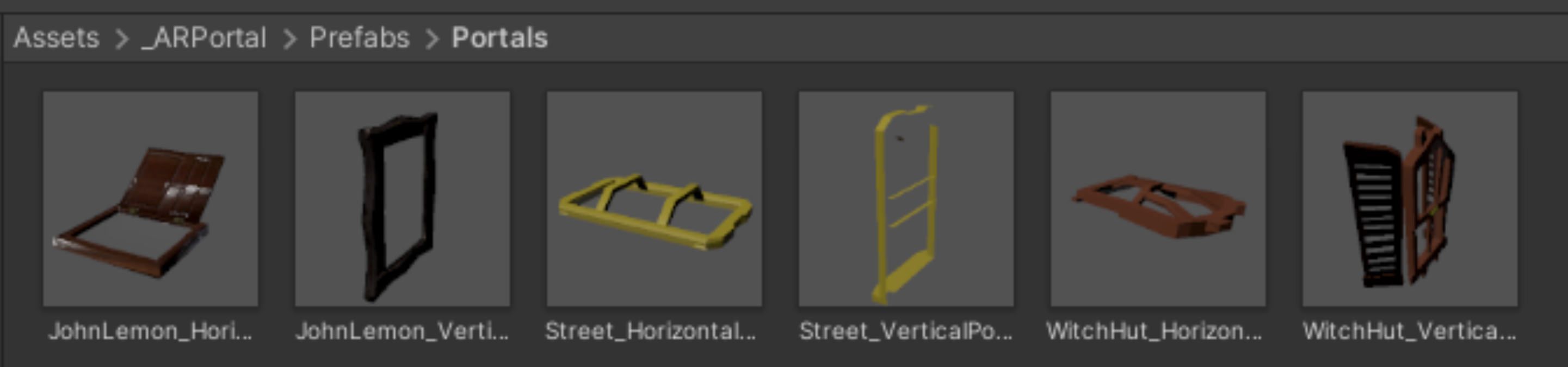 The portals are located in _ARPortal > Prefabs > Portals — we have provided a horizontal and vertical option for all three of the environments.