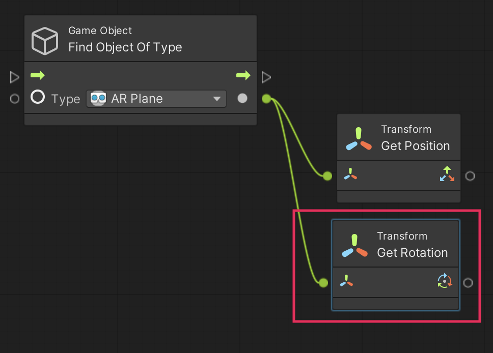 The portal’s rotation should also match the plane’s rotation. Just as you used the Transform: Get Position node to get the plane’s position, you’ll use the Transform: Get Rotation node to get the plane’s rotation.