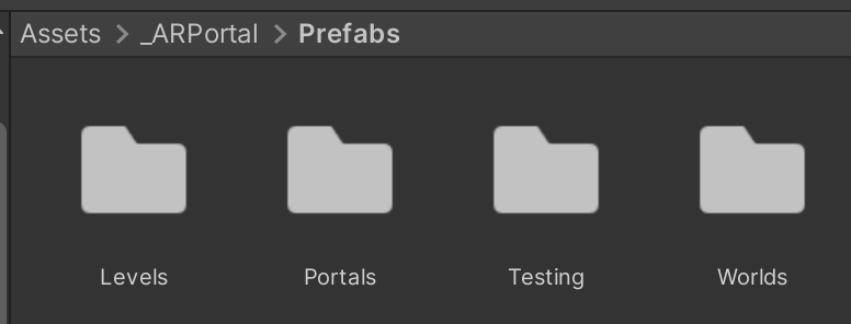 5. In the Project window, navigate to Assets > _ARPortal > Prefabs.