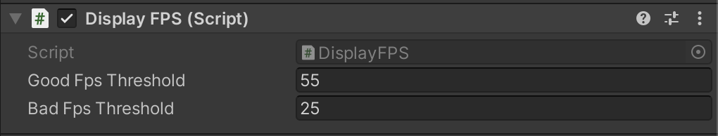 These threshold values control the color of the text displayed in the FPS Overlay UI: