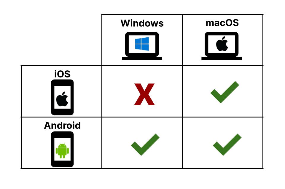 If your computer runs MacOS (any Mac computer), then you can deploy apps to both Android and iOS devices. However, if your computer runs Windows (most non-Mac computers), you can only deploy apps to Android devices. You cannot deploy apps to iOS devices with a Windows computer because the process requires a program called XCode, which is only compatible with MacOS.