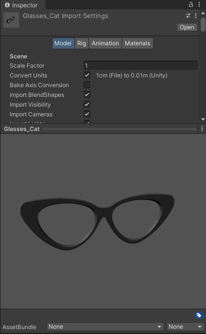 1. Export the new glasses as an FBX file.