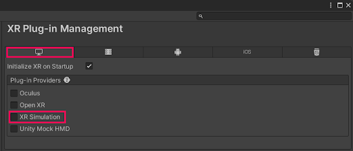 7. Select the Windows, Mac, Linux settings tab and deselect XR Simulation.