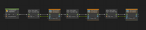 You’re almost there! You can now call the remaining materials using the four-node sequence that you set up for the first button. Then, the color switching functionality will be complete.