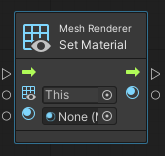 Important: Take care when you select this code, as there is also a Mesh Renderer: Set Materials node (note the plural). For this graph, you must use the singular version of the node.