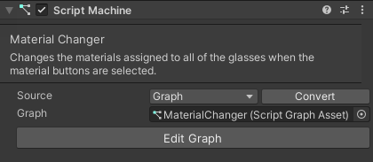 6. Select Edit Graph to open the MaterialChanger script graph.